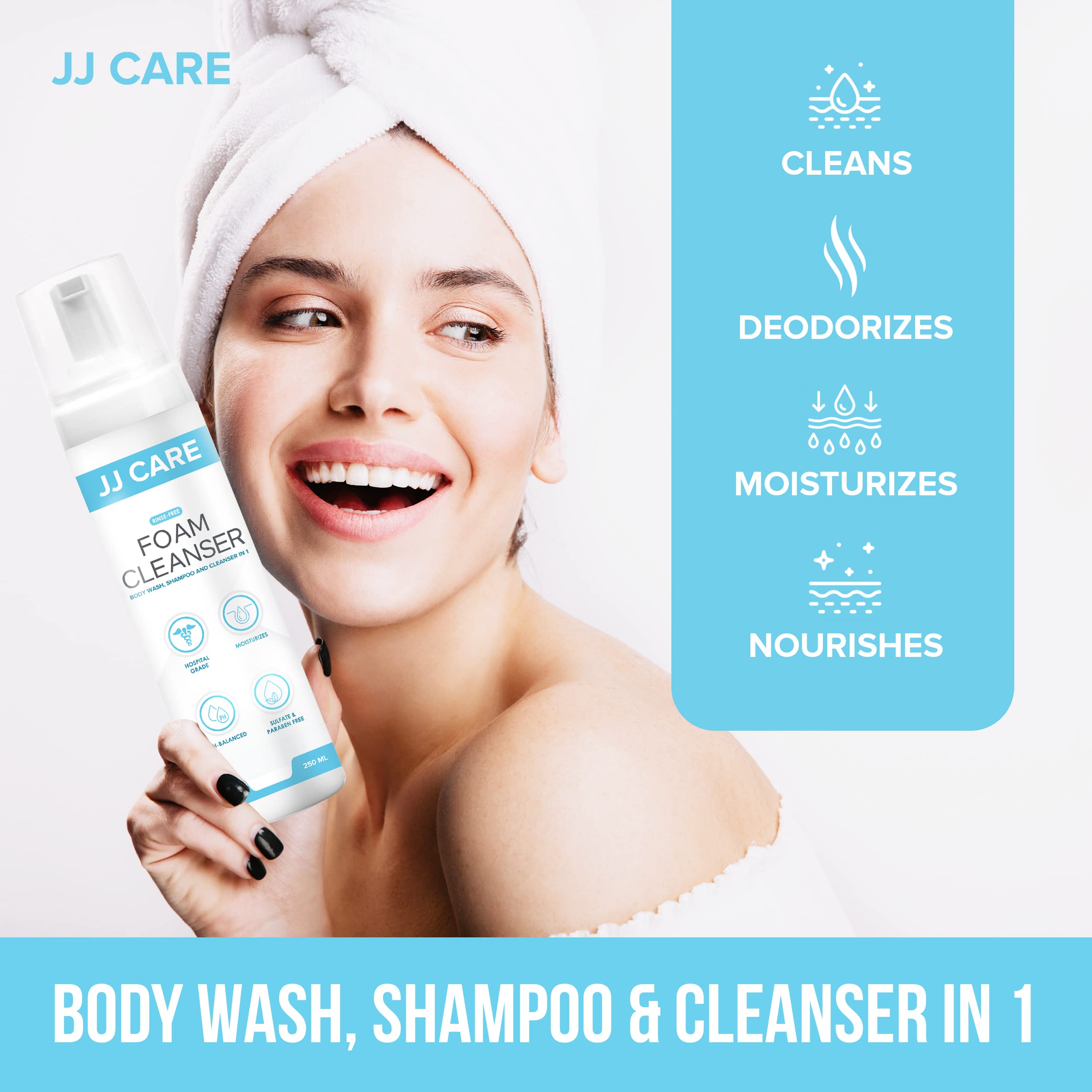 Amazon Com Jj Care Rinse Free Foam Cleanser Pack Of 3 8 45 Fl Oz Rinse Free Body Wash For The Elderly Deodorizing Waterless Body Wash 3 In 1 Moisturizing Rinse Free Shampoo For Disabled Foaming